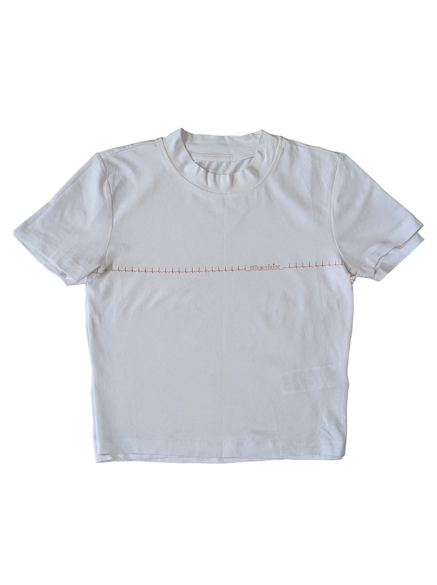 ❤ Найяскравіше червона кардіограма виглядає на білому одязі. Цей кроп-топ унікальний і існує в одиничному екземплярі, від виробника Reserved з авторським прінтом. Кардіограма йде по колу, Харків з маленьким серденьком потрапляє в зону великого серця ❤